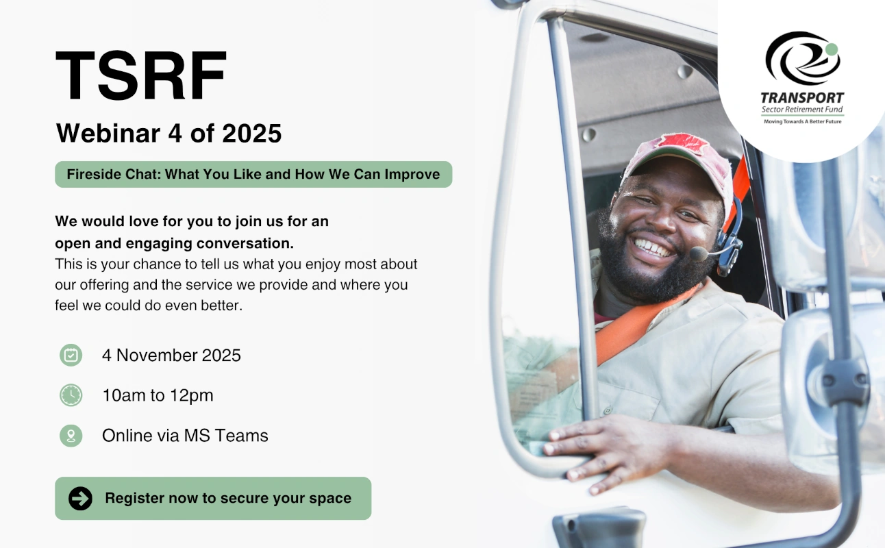 The Transport Sector Retirement Fund provides members with a means to save for a comfortable retirement, and also gives you access to risk benefits that include death, disability and funeral benefits.